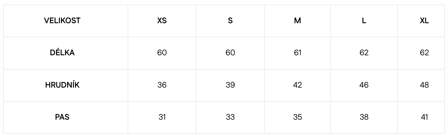 Uvedené rozměry jsou měřené v klidu bez natažení. Můžete je porovnat s vaším oblíbeným vypasovaným tričkem.