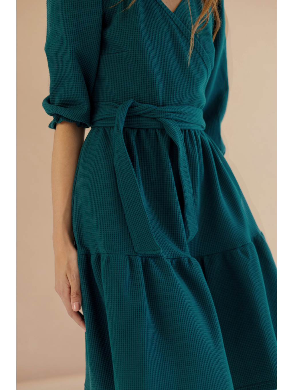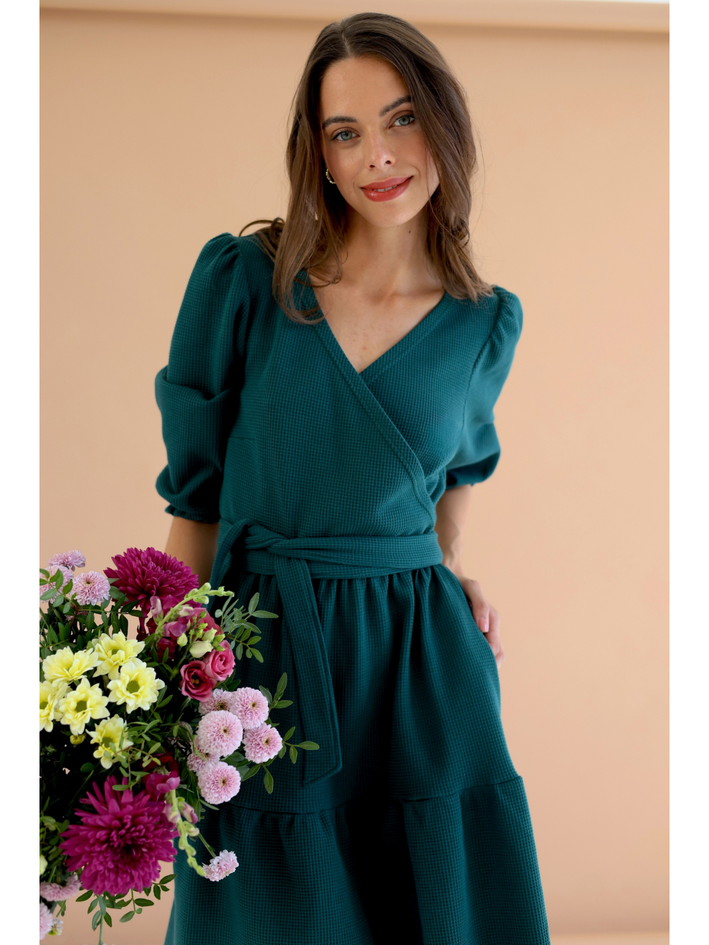 Šaty Ava šijeme z biobavlněného úpletu s vaflovou texturou. Je měkoučký, pružný a neprosvítá. Více o našich materiálech se dozvíte v novém článku.